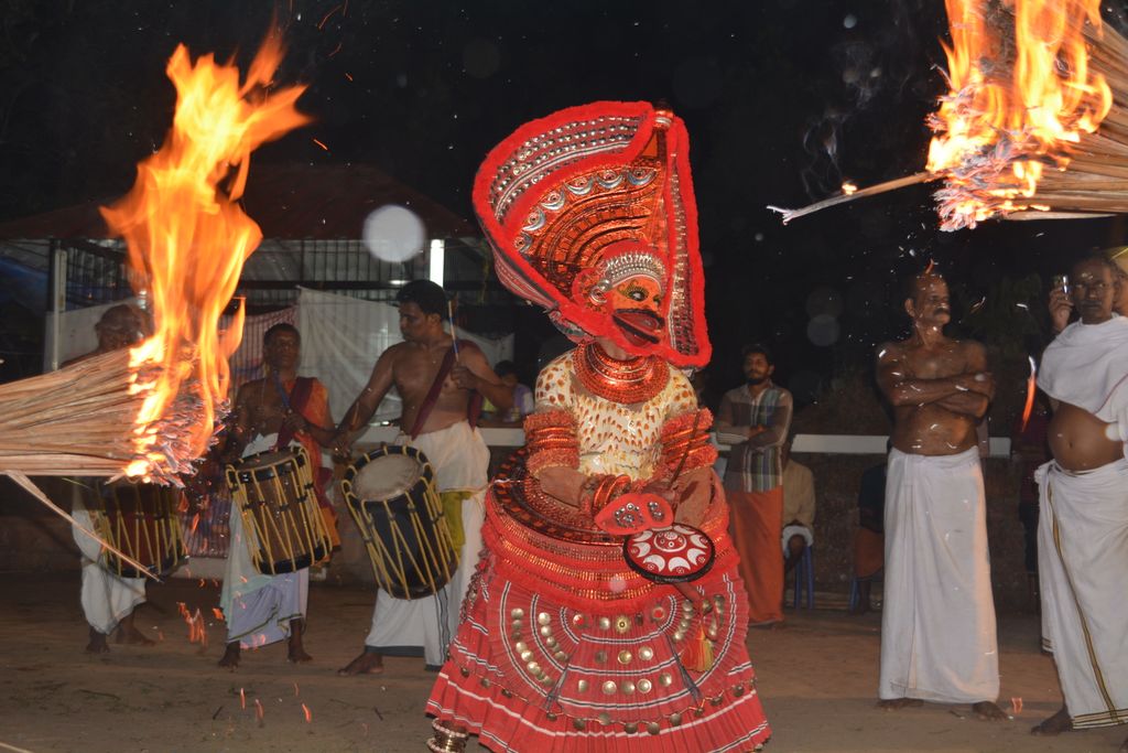 ശ്രീ വിഷ്ണുമൂർത്തി; കരിഞ്ചാമുണ്ടി; കാലിച്ചാൻ ദൈവം; ഭദ്രകാളി; ഗുളികൻ; ധർമ്മദൈവം; ഇടക്കേൻ ഗുരിക്കൾ; മുത്തച്ചൻദൈവം; ഗുരുനാഥൻദൈവം; മന്ത്രമൂർത്തി; ചൊയ്യാർഗുരിക്കൾ; ഈറ്റമൂർത്തി; കൂമനാട്ടി എന്നീ തെയ്യക്കോലങ്ങൾ