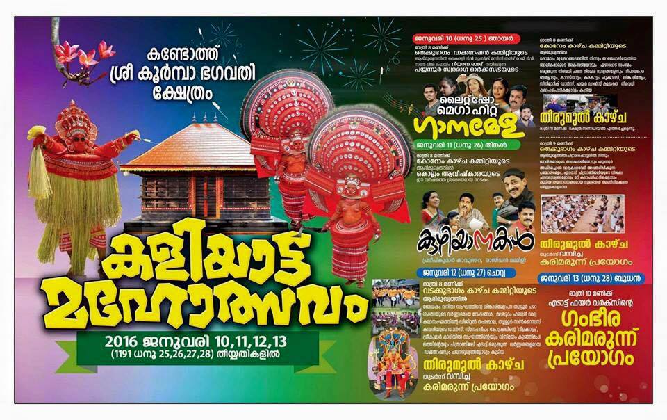 Theyyam festival every year Dhanu 25,26,27,28 (January 10,11,12,13)